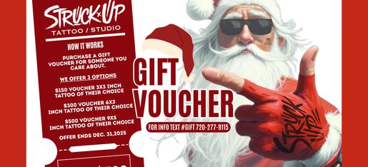 For the month of December Struck Up Tattoo will be celebrating the holidays by offering exclusive deals on tattoos as well as tickets to events.